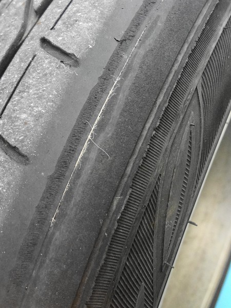 プリウスのお客様がご来店になり、タイヤを点検したら前輪の内側がこんな状態でした・・・