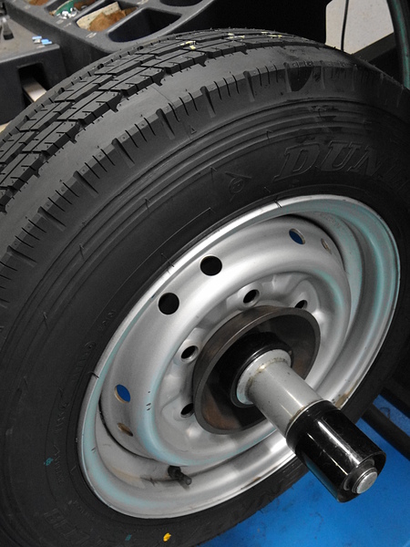 三晃タイヤ商会では、乗用車から、小型・中型トラックまでバランス調整可能な設備がございます!