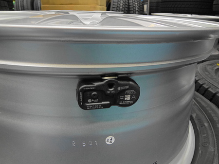 飛行機みたいな形をしているのが、センサー(エアバルブと一体型)です。丸いのが取り付け用のナット・・・L字型のモノはチビッコトルクレンチデス。当店はメーカーの取り決めトルクでキッチリ取り付けます!!