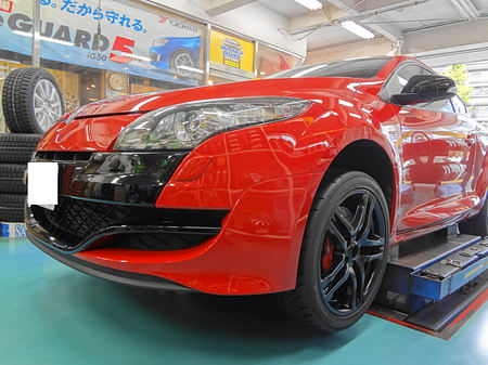 先日、ミシュラン パイロットスポーツカップ 235/40R18をお買い上げ頂きましたメガーヌ・ルノースポールのお客様です今回は純正ホイールに、ダンロップ DIREZZA ZUの235/40R18をお買い上げいただきました。続けてお買い上げ、ありがとうございます。